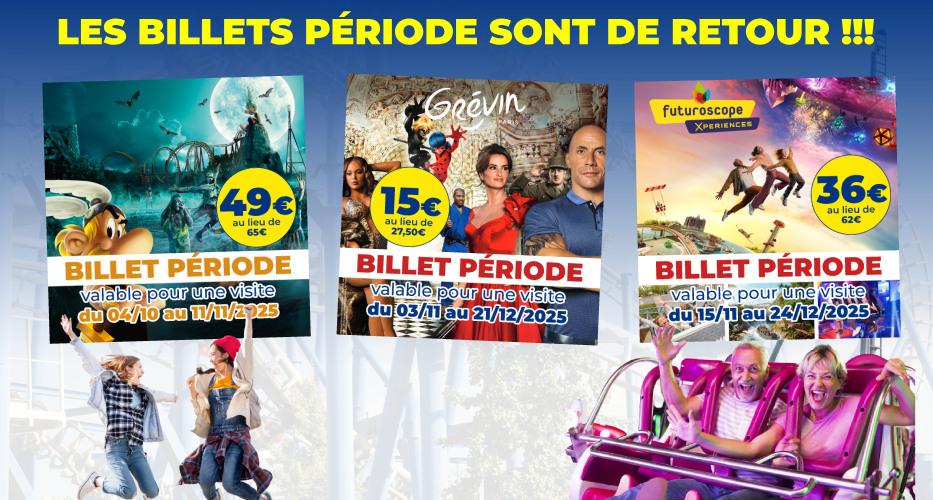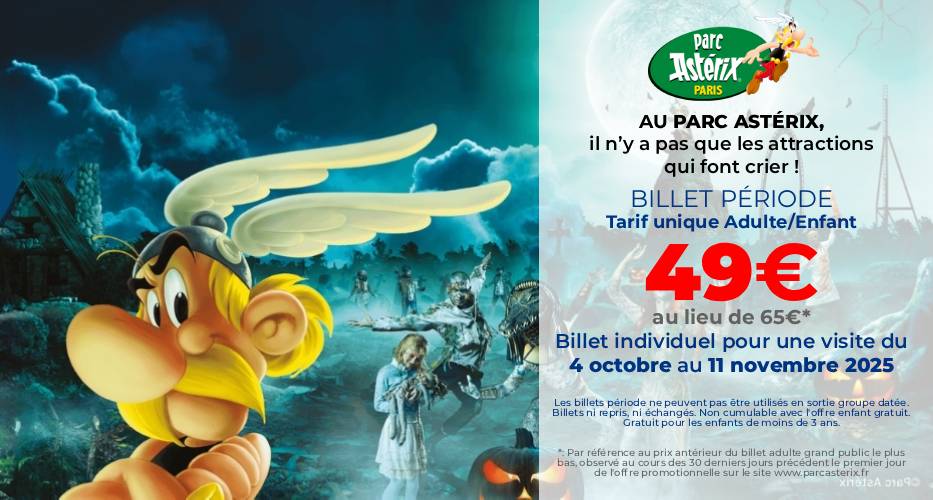 Au Parc Astérix, il n’y a pas que les attractions qui font crier ! En profitant du BILLET PÉRIODE (tarif unique Adulte/Enfant) à 49€ au lieu de 65€*, utilisable pour...