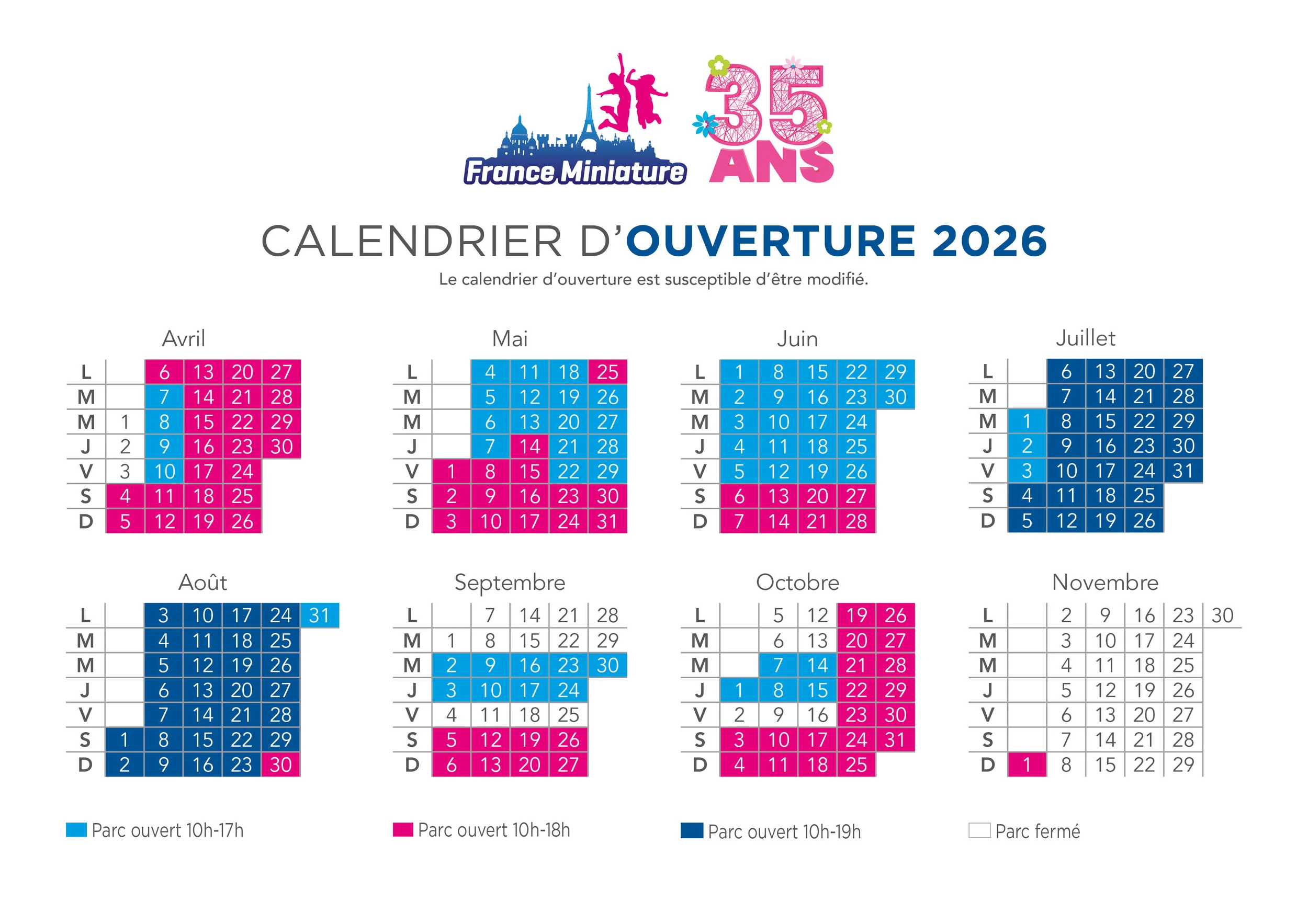 Une saison riche en surprises vous attend : animations inédites, décorations spéciales et de nombreux clins d’œil à 35 ans d’histoire et de partage. Et ce n’est pas tout… Si vous fêtez vos 35 ans en 2026, votre entrée est offerte ! Une aventure festive et joyeuse à vivre en famille ou entre amis, pour (re)découvrir la France… en miniature!